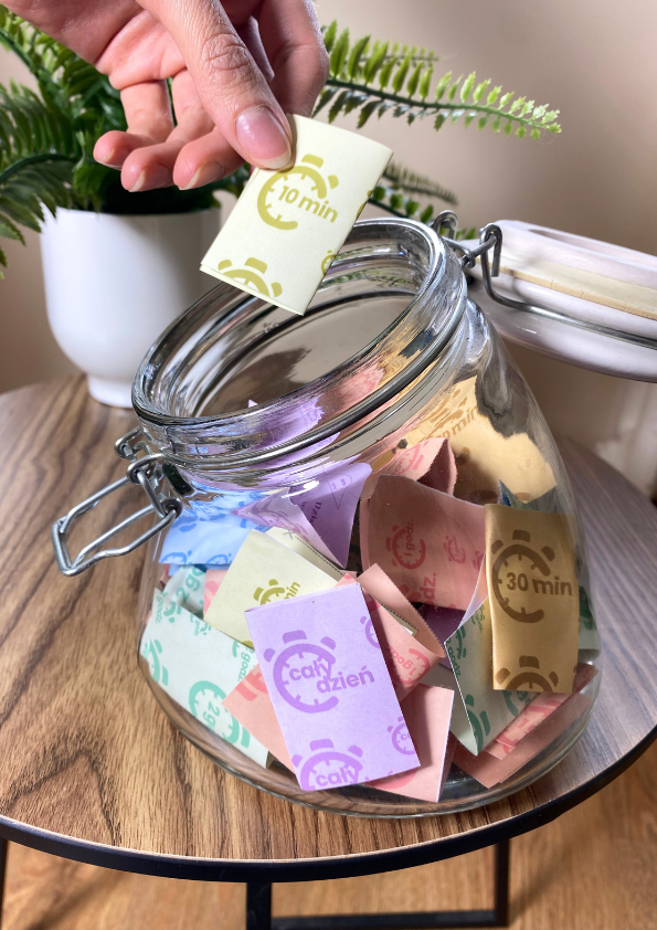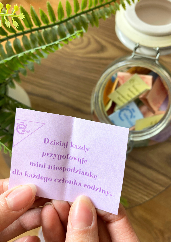 Jak grać? Losujecie jedno wyzwanie i wykonujecie w dowolnym tempie! To idealna propozycja na rodzinne wieczory po szkole, weekendy lub jako mały rytuał „misji dnia”.